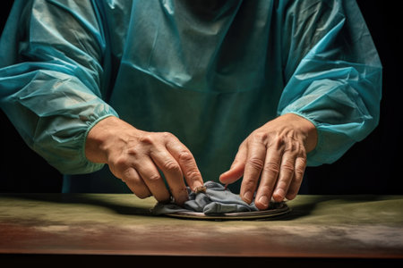 focus on a surgeons hands performing fundoplication, created with generative ai