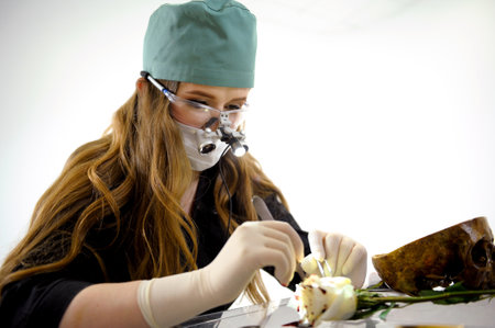 Preparing a fossil of an ancient fish specimen in paleontology lab