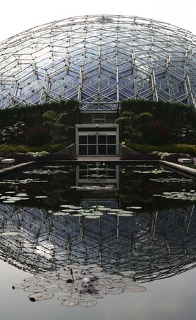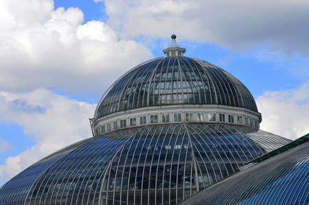 Glass roof dome of greenhouse consisting of rectangular panels in the park of Lisbon, Portugal