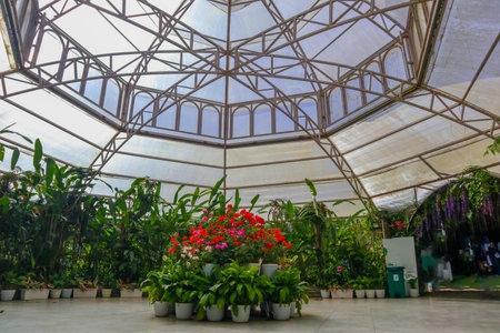 Colorful Flower Garden Inside a Greenhouse During a Bright Afternoon