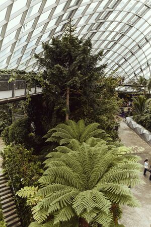 Beautiful tropical gardens and architecture in the Cloud Dome, at the Gardens By the Bay, in Singapore
