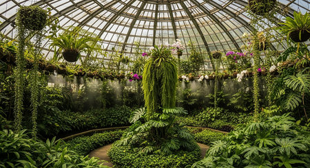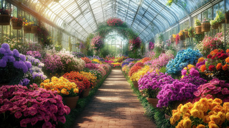 Explore a stunning greenhouse filled with a vibrant array of blooms, showcasing the beauty of nature and the serenity of a floral paradise.