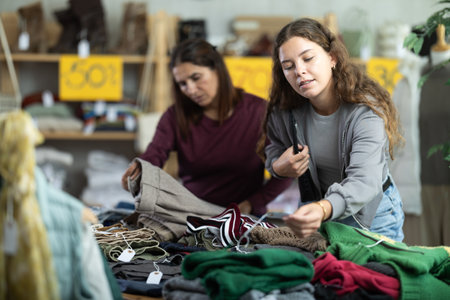 Two selective women choosing clothes in clothing store