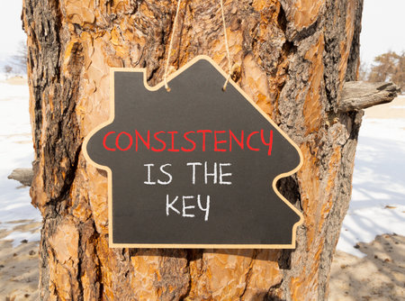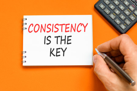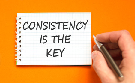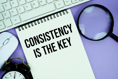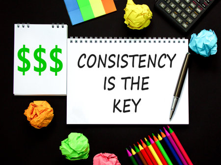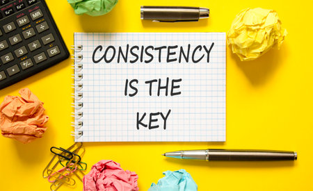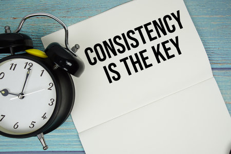 colored paper with the words CONSISTENCY IS KEY. consistent self-education concept