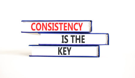 Consistency is the key symbol. Concept words Consistency is the key on beautiful books. Beautiful white paper background. Business consistency is the key concept. Copy space.