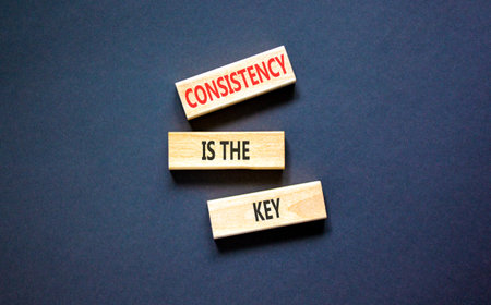 Consistency is the key symbol. Concept words Consistency is the key on beautiful wooden blocks. Beautiful white background. Business consistency is the key concept. Copy space.