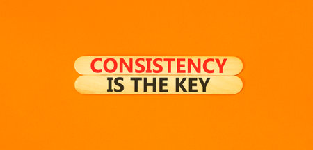 Consistency is the key symbol. Concept words Consistency is the key on beautiful wooden sticks. Beautiful orange background. Business consistency is the key concept. Copy space.