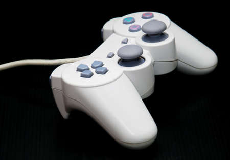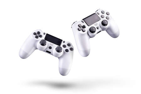 Set of white video game joysticks gamepad isolated on a white background, concept of playing games or watching TV.