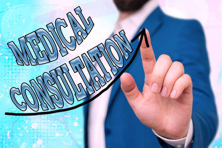 Conceptual hand writing showing Medical Consultation. Concept meaning act of seeking assistance from another physician Digital arrowhead curve denoting growth development concept