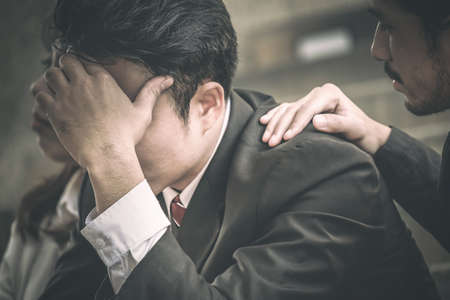Stressed businessmen have problems and headaches with failure in what to expect.