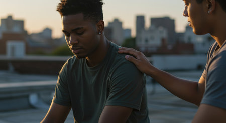 Two close friends share a heartfelt moment, offering each other vital support during tough times