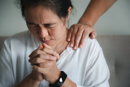 Christian people are praying to encourage and support together at home.