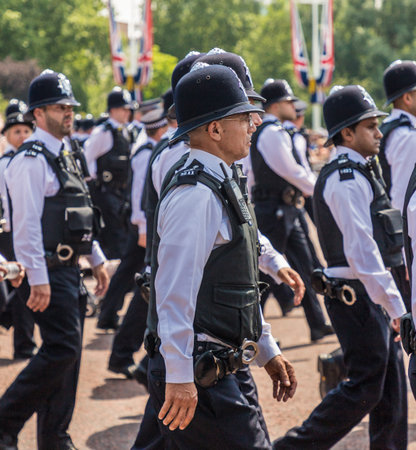London. June 9 2018. A view of a large group of police officers during the Queens birthday celebrations of Trooping the Colour