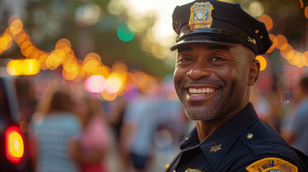 A friendly police officer poses with pride showing commitment to serving the community.