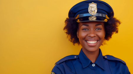 Smiling Black Female Police Officer on Yellow Background
