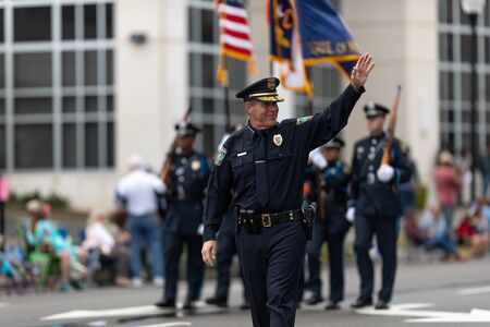 Azalea Festival, Wilmington Police Chief waving at the spectators during the parade