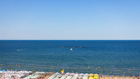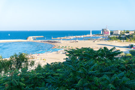 Black Sea Modern Beach on a sunny day with a blue sky,Constanta beach at Black Sea,panoramic view Constanta Romania