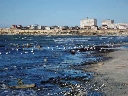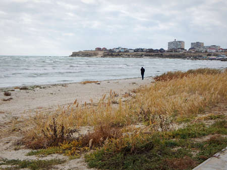 Autumn coast of the Caspian Sea. Kazakhstan. Aktau. 09 October 2019 year.