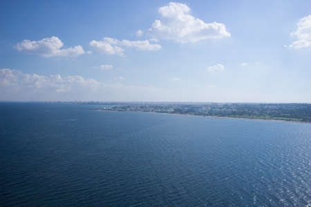 View of the city of Odessa, Luzanovka beach, Black Sea and Kuyalnitsky estuary. Photo from a helicopter