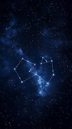 A stunning visual representation of a constellation in the night sky with bright stars and lines