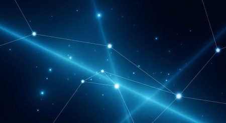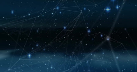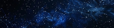 Blue Network Constellation on Starry Sky Connecting Distant Points with Lines and Glowing Dots