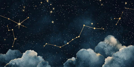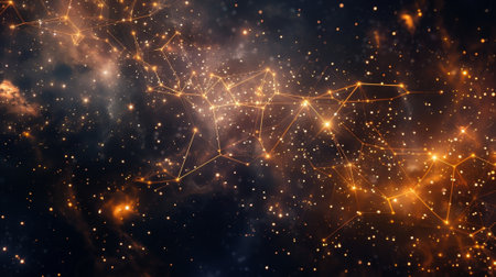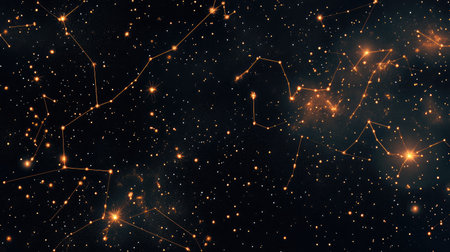 A stunning visual representation of constellations in a starry night sky with a warm glow
