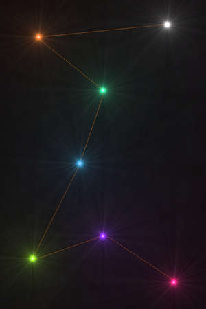 Glowing constellations connected by lines in a colorful night sky display
