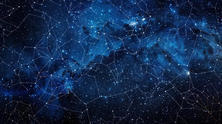 Starlit night sky with constellations illuminated against a deep blue cosmos