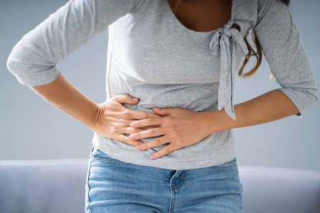 stomach ache. Asian men have abdominal pain, indigestion, gastritis, menstrual cramps, flatulence, diarrhea, distention, colon cancer, belly inflammation problem, suffer food poisoning, abdomen