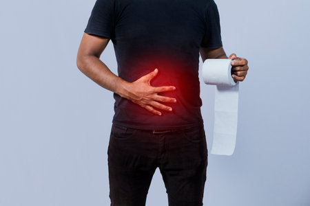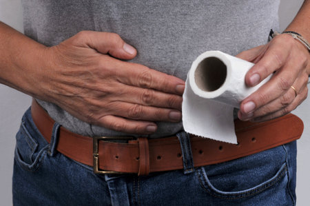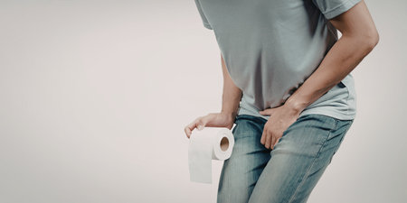 Men have abdominal pain holding toilet tissue