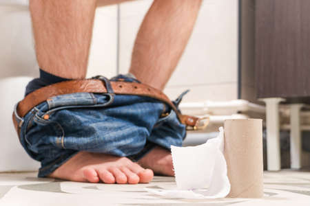 Man sitting on wc and suffering from diarrhea.