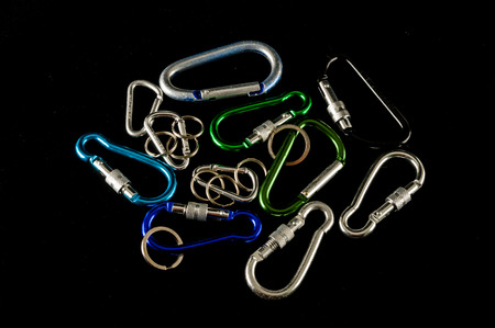 Metal aluminum snap hook isolated background Safety lock carabiner for rope climbing