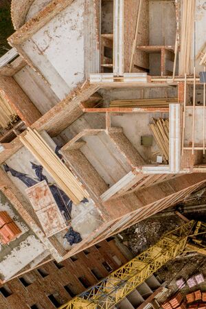 Construction of a high monolithic house, view from the top