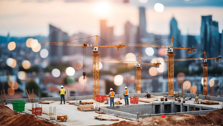 Dynamic construction site filled with tower cranes showcasing urban development and growth