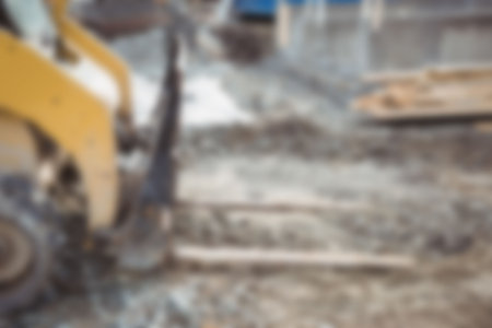 Blur background of construction workers working at a building site with scaffolding and machinery. Professional civil engineer or worker working at site. Industrial and construction process. Spate.