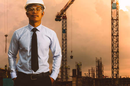 Generative AI : Portrait professional engineer man or worker at construction site workplace
