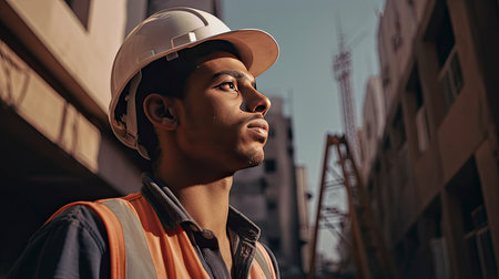 The picture of the professional construction worker or engineer working inside the construction site, the construction site worker require knowledge of construction techniques and materials. AIG43.