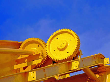 Meshing gear wheels. Part of the drive train for a dockyard crane.