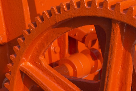 Large cog wheels with control wheel, part of cog mechanical close-up.