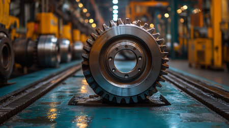 This image showcases a large metal gear, highlighting its sharp teeth and textured surface. It represents industrial machinery, precision engineering, and mechanical design.