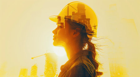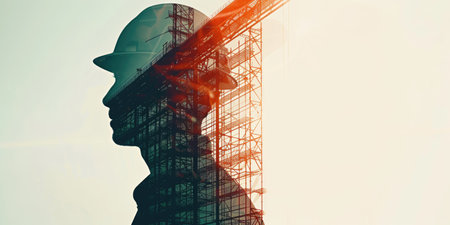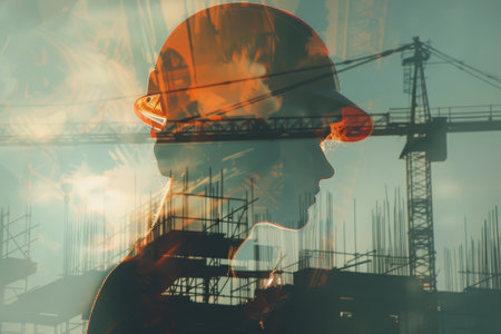 A visionary commitment to building construction engineering, portrayed through double exposure