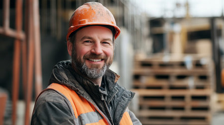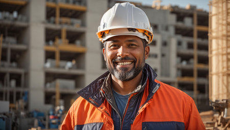 Joyful construction worker enjoys his day at work showing a spirit of teamwork and commitment.
