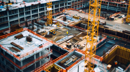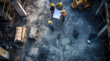 Generative AI : Construction site workers aerial Top View