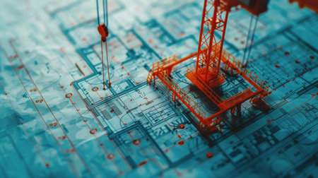 Contruction crane with blue print background