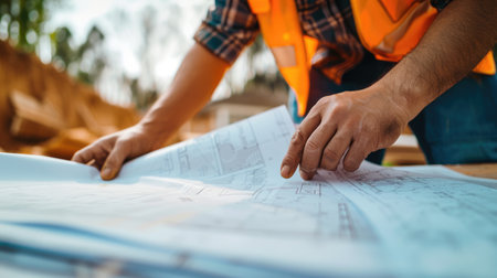 closeup shot of a male construction worker holding a blueprint, created with generative ai
