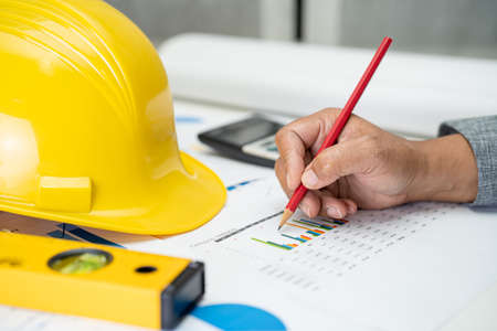Architect or engineer working project accounting with graph with tools in office, Construction account concept.