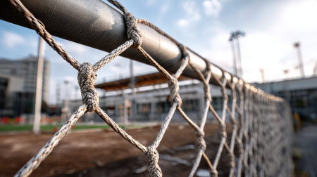 Durable steel mesh fencing around large construction site, securing heavy machinery and building materials