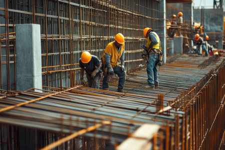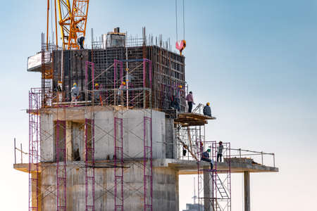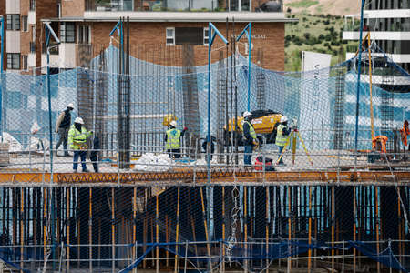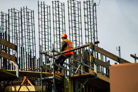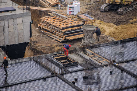Bucharest, Romania, 1 February 2016: Laborers work at the construction site of a building in Bucharest.
