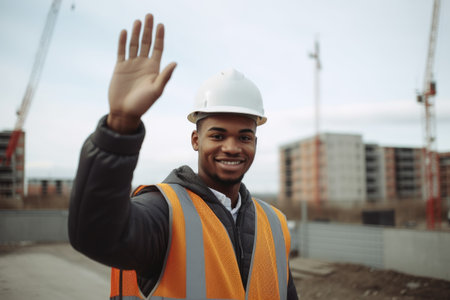 shot of a young man waving at the camera while on site, created with generative ai