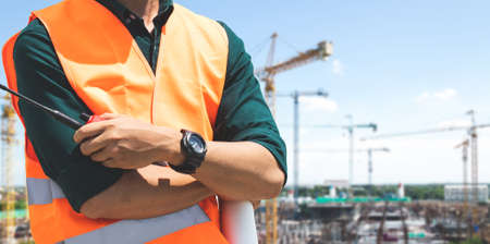 Engineer working on a construction site. Engineering and construction concept.